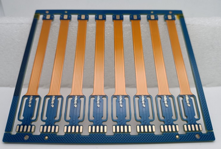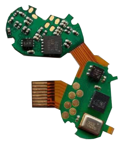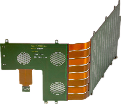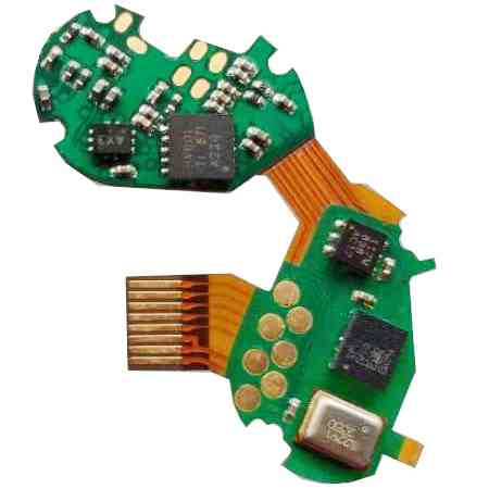 The Printed Circuit Board is 4Layer Rigid-Flex PCB made with FR4 + PI material and mounted with some SMD components and THT parts