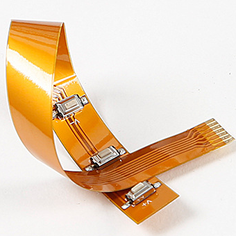This PCB (Printed Circuit Board) is a 2Layer Rigid-Flex PCB made with FR4 + PI material and mounted with components on top side